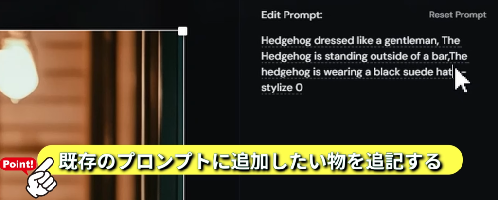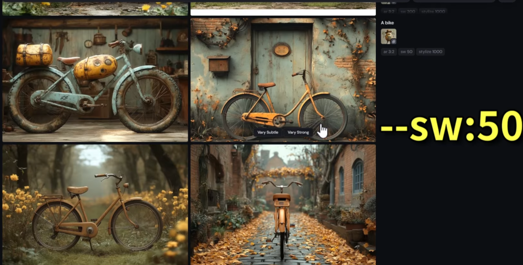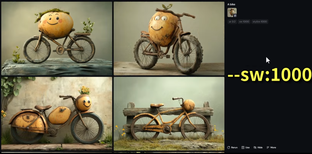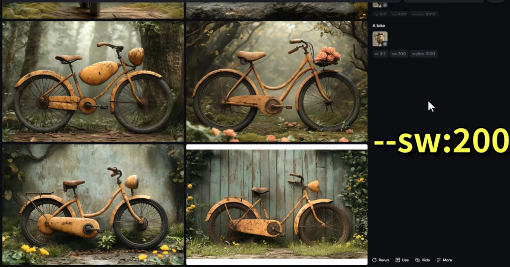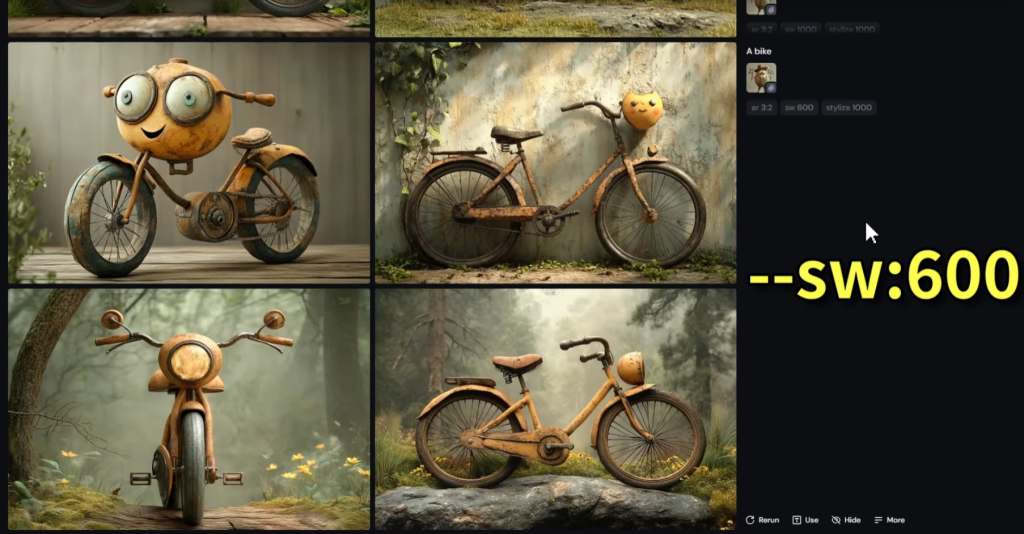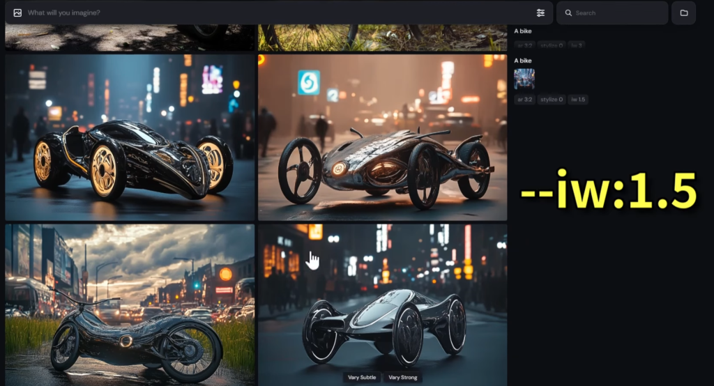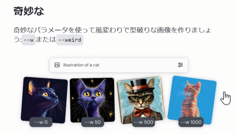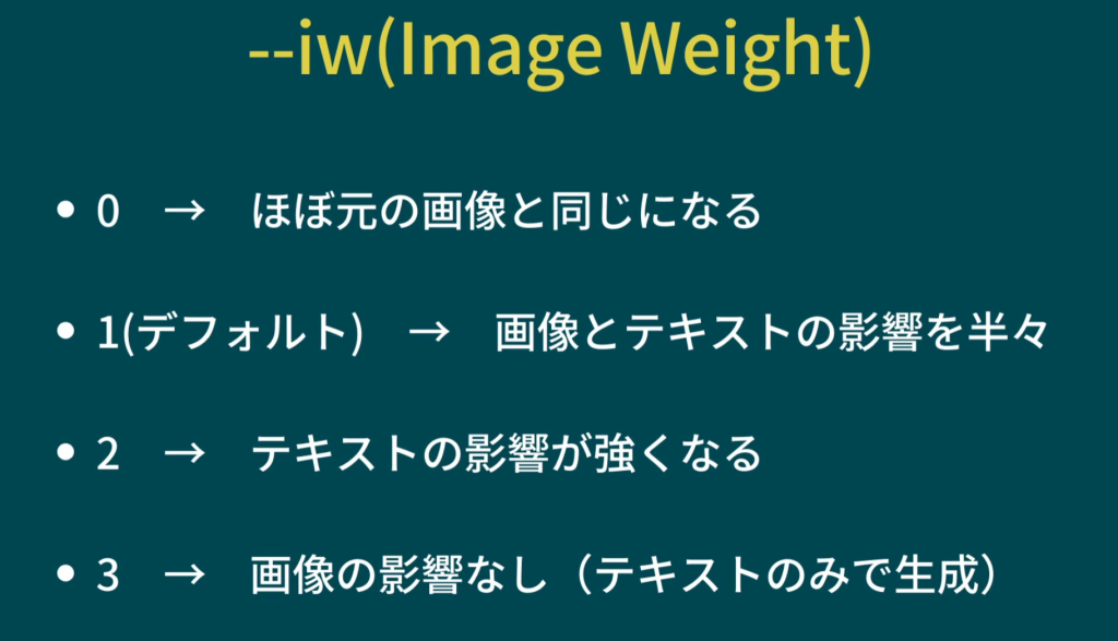 プロンプトの末尾に「–iw」を追加することで機能する。