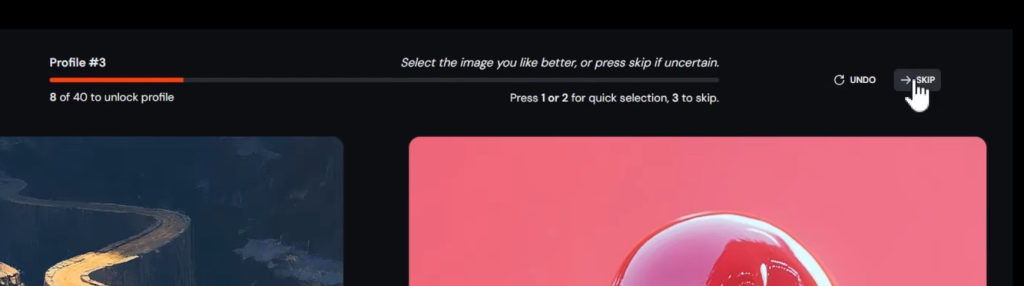 選択は40回あるので、少し時間がかかるが、こちらから画像を用意する必要がない分、楽ではある。好みがなければスキップも可能。