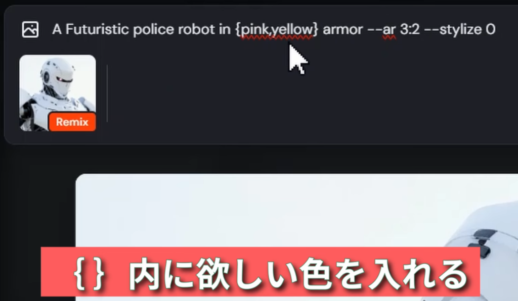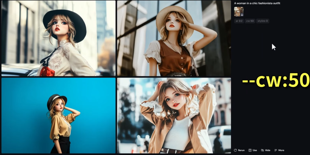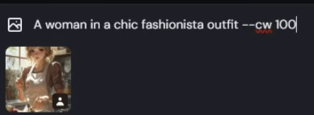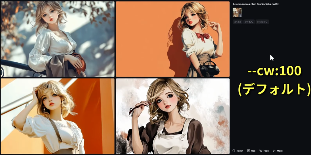 プロンプトの末尾に「–cw」を追加することで機能する。
