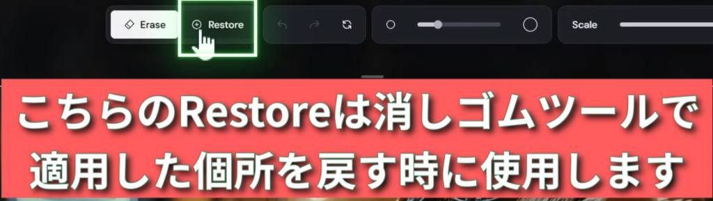 Rerun と Editor があるが、 Editor で拡縮した上で、市松模様の部分を拡張するように描いてもらうことができる。Scale によって倍率を決め、余った部分の市松模様を生成してもらう。