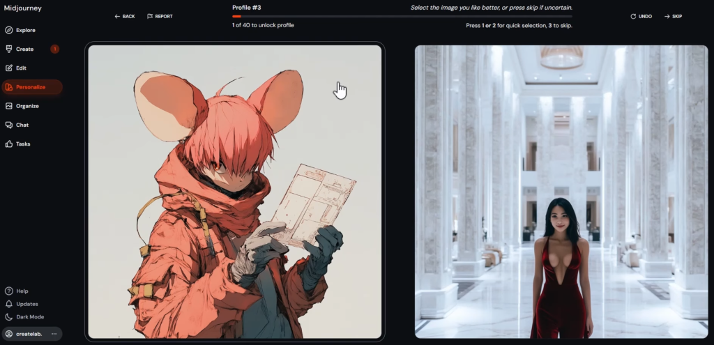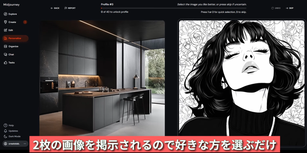「Create Standard Profile」は複数の画像が出てくるので、どのテイストが良いのかを選択形式で絞り込んでいく方法。