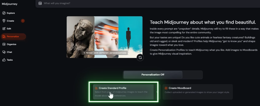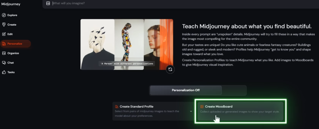 「Create Standard Profile」と「Create Moodboard」の二種類があるので、「Create Moodboard」を選択。