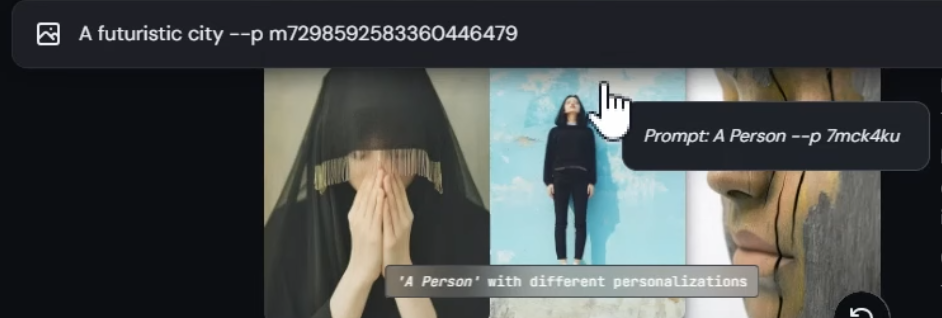 すると、そのムードボードのパラメーターが出てくる。このパラメーターは常にプロンプトの後ろになければならないので、プロンプトを加える時には、パラメーターより前に入力を。