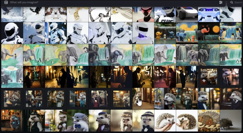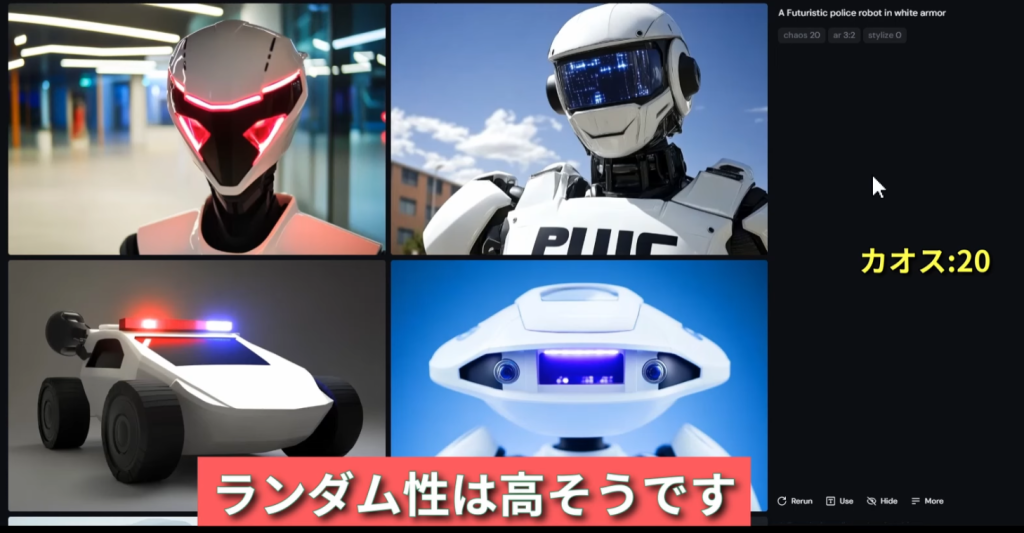 この画面では右上からプロンプトで使用した単語で検索が可能。下図は「robot」で検索した例。