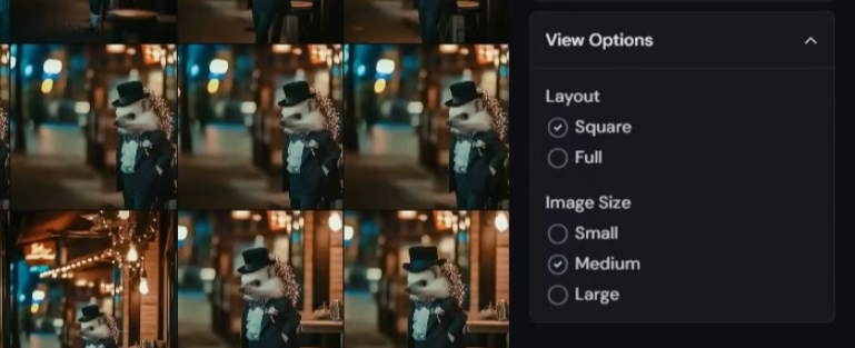 「View Options」は表示するサイズ感を変える。正方形や全サイズなど。