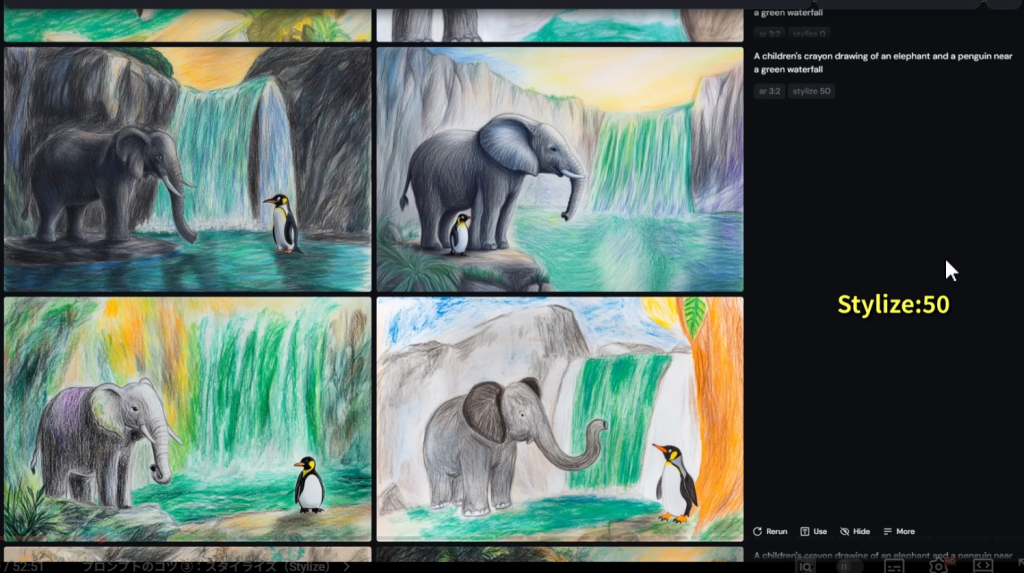 スタイライズの値を0にすると、プロンプトしか参照しない。